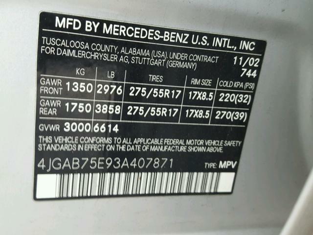 | VIN: | 4JGAB75E93A407871 |