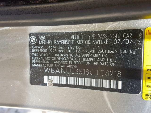 | VIN: | WBANU53518CT08218 |