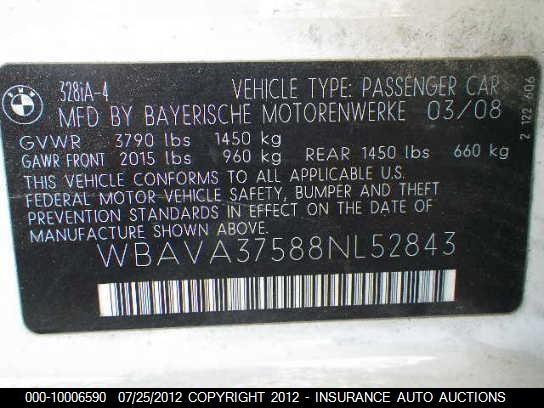 | VIN: | WBAVA37588NL52843 |