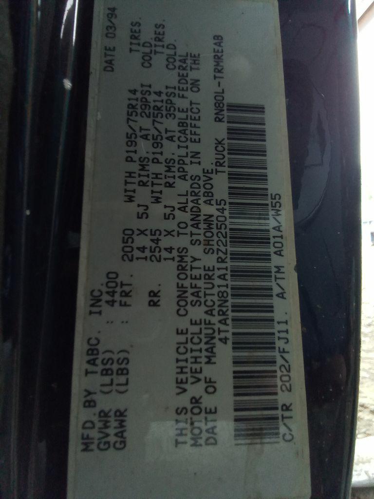 | VIN: | 4TARN81A1RZ225045 |
