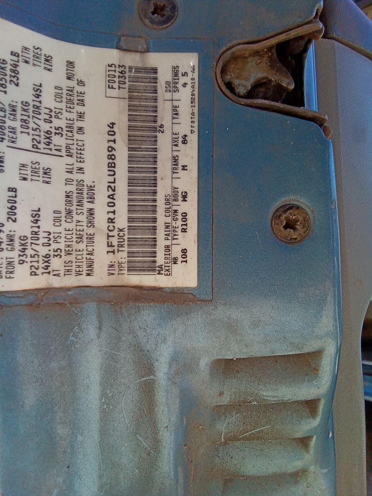 | VIN: | 1FTCR10A2LUB89104 |