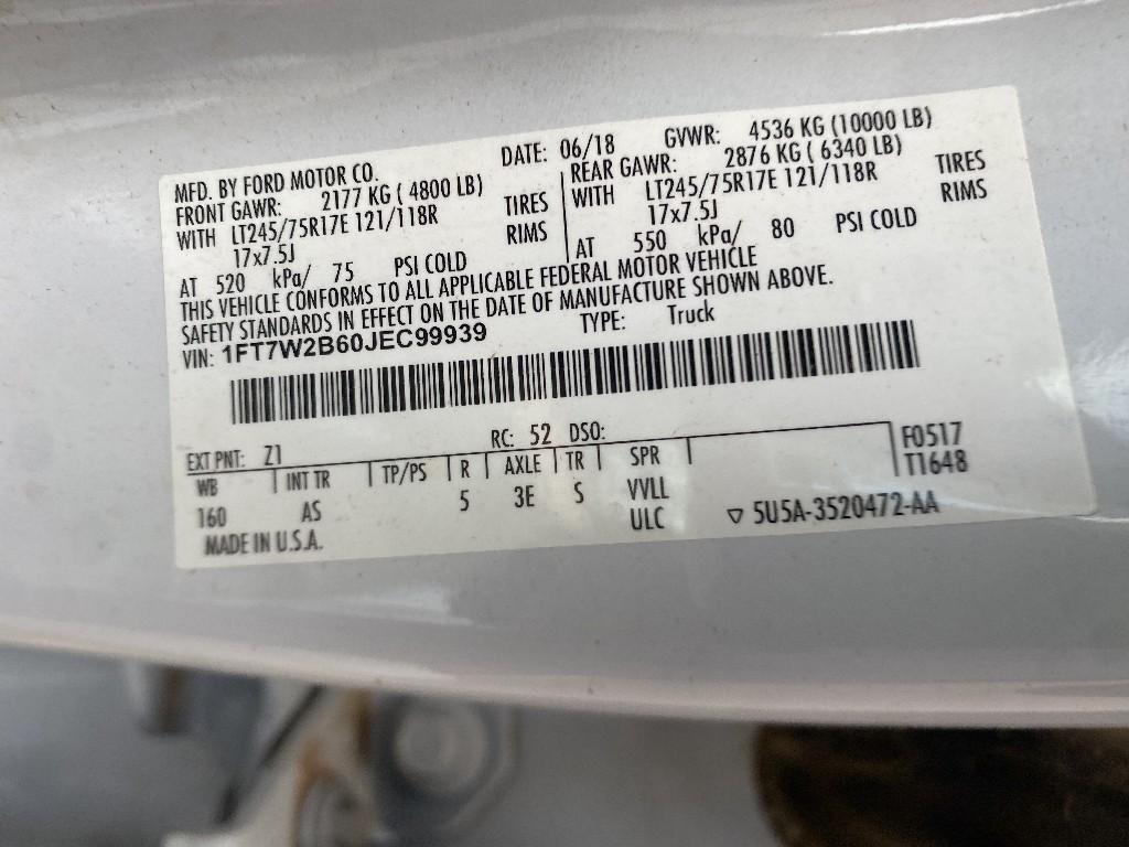 | VIN: | 1FT7W2B60JEC99939 |